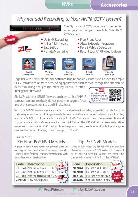 ZIP108B Non PoE 8ch NVR 1TB HDD £298 ZIP208B PoE 8ch NVR 2TB HDD £358